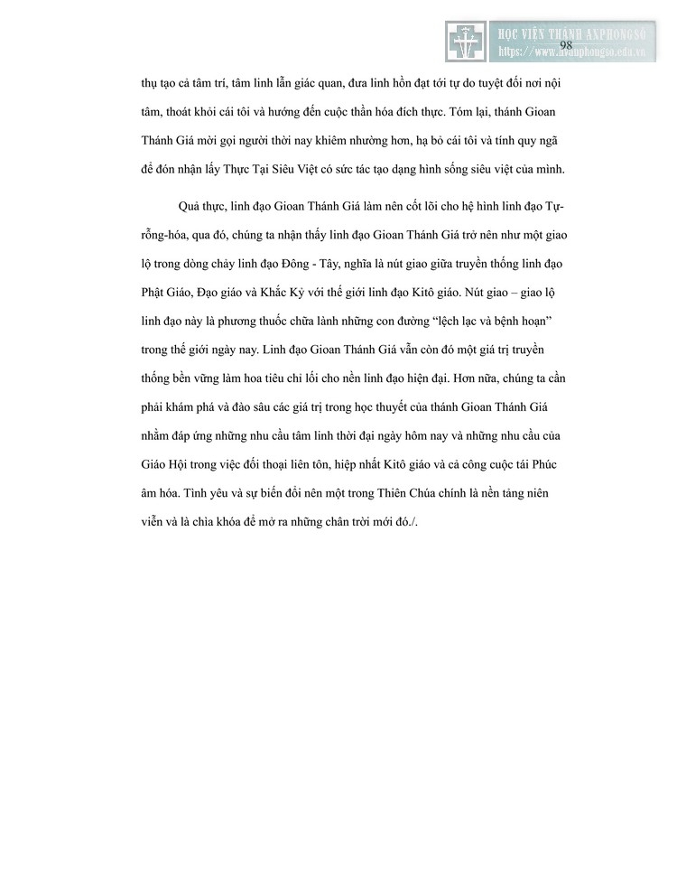 LINH ĐẠO THÁNH GIOAN THÁNH GIÁ: