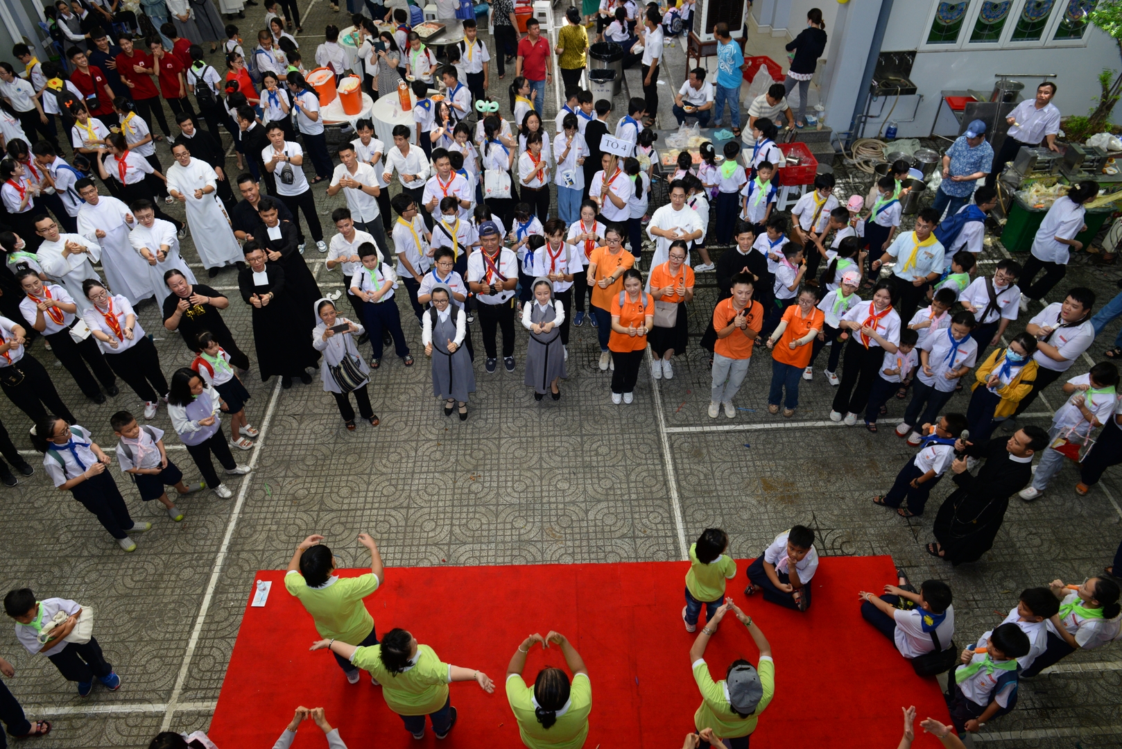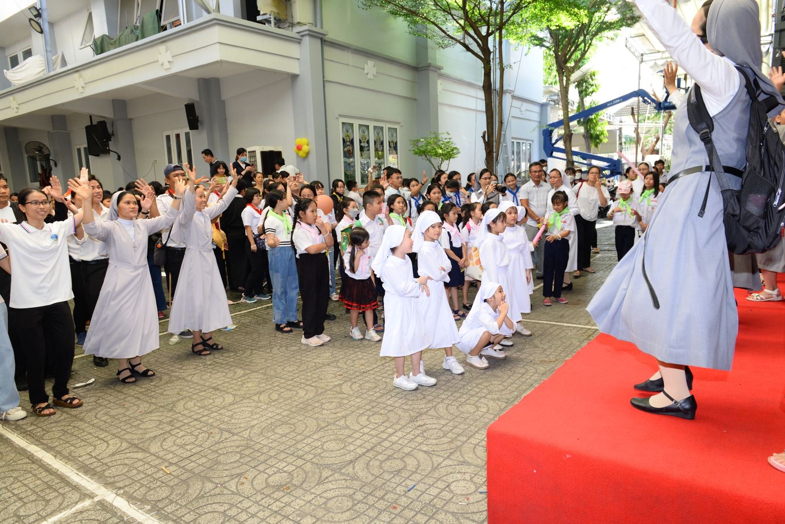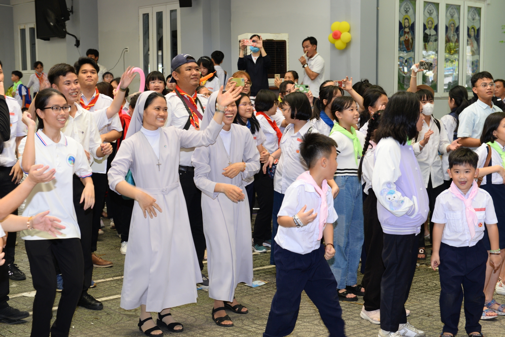 phấn khích của các em thiếu nhi và niềm vui tràn ngập trong khuôn viên của giáo