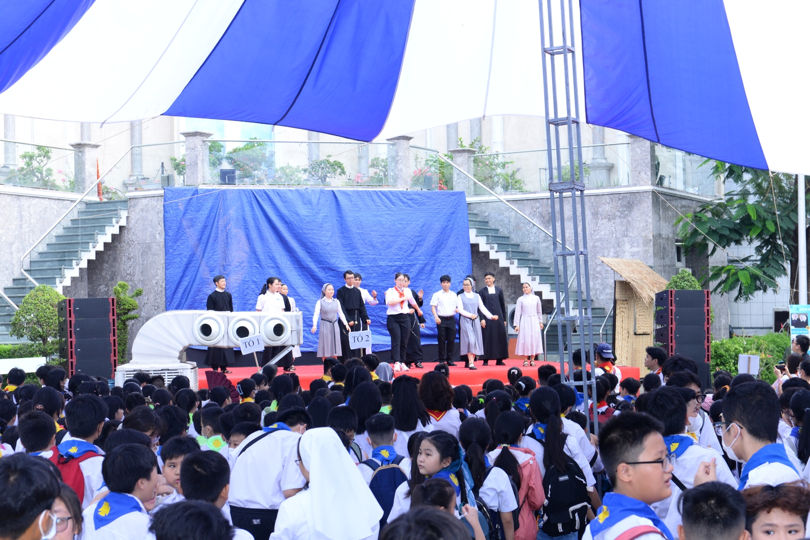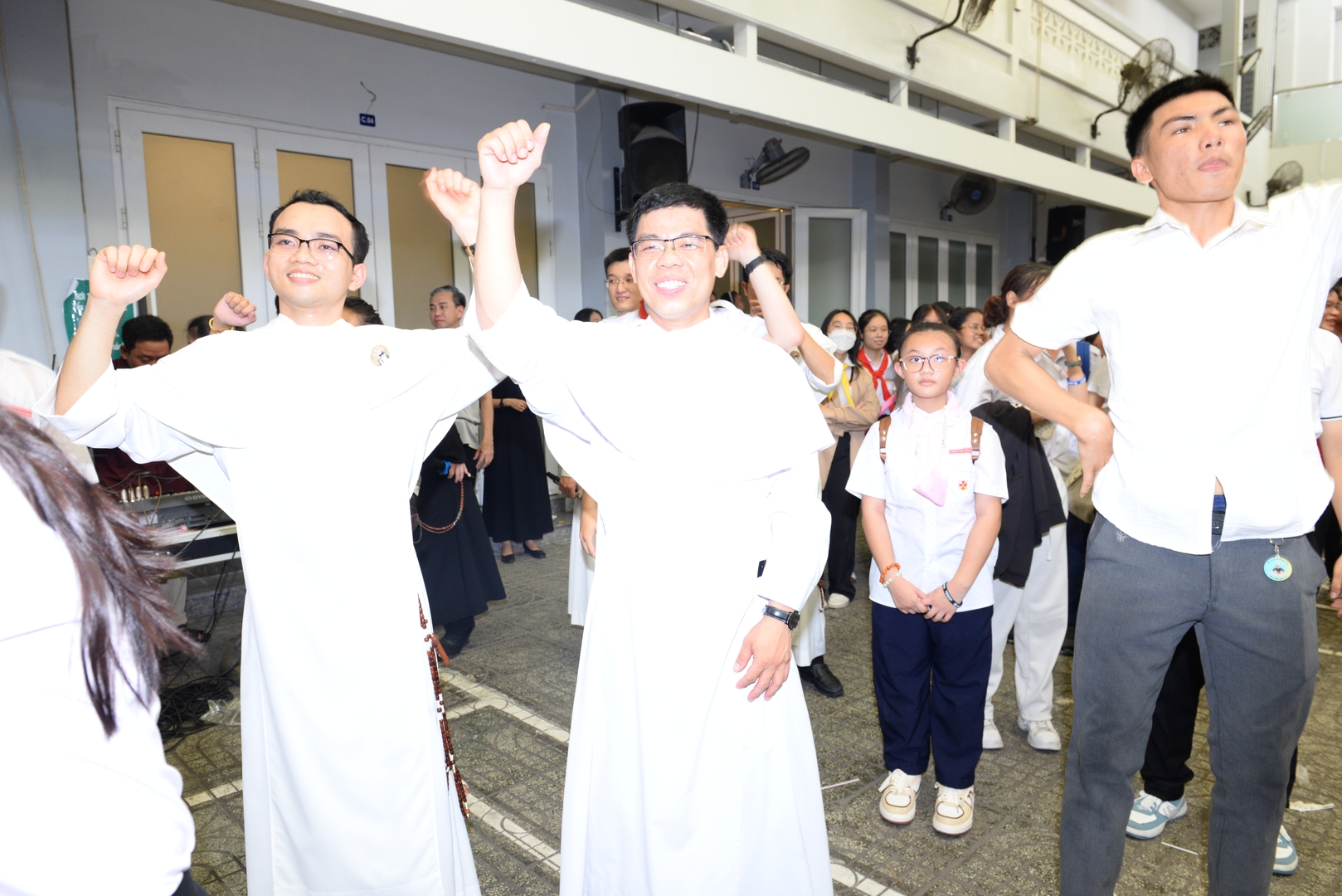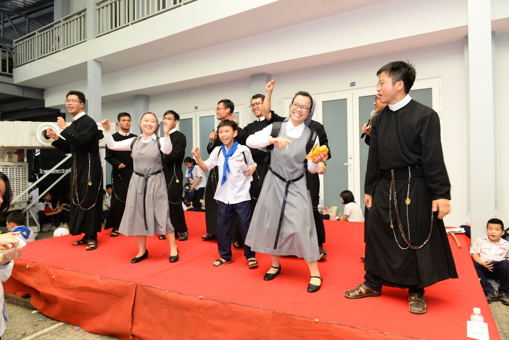 phấn khích của các em thiếu nhi và niềm vui tràn ngập trong khuôn viên của giáo