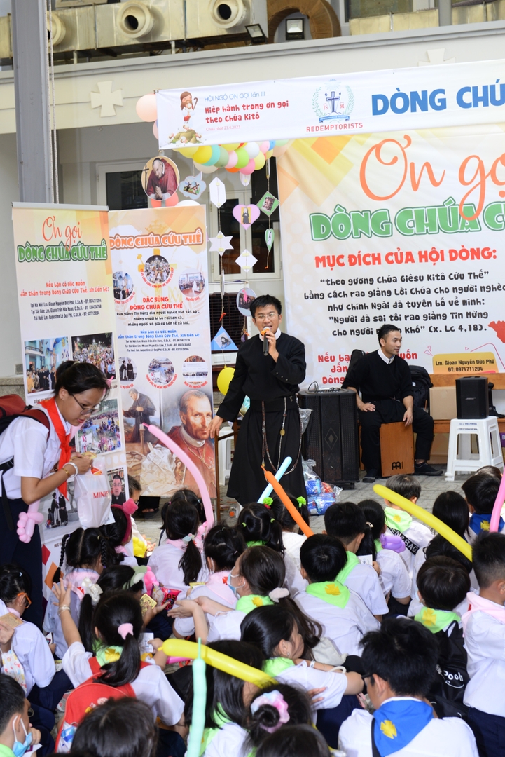 lúc 7:40 ngày 23.04.2023, Thánh Lễ đồng tế cầu nguyện cho ơn thiên triệu do cha Giuse Nguyễn Ngọc Bích - Giám đốc Học viện thánh Anphongsô - chủ tế. Thánh Lễ bắt đầu bằng cuộc rước nhập lễ trang nghiêm, sốt sắng, trong sự trầm trồ và ngạc nhiên nơi đôi mắt của thiếu nhi giáo xứ.