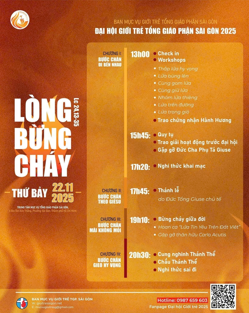 10. Tại Tổng Giáo phận Sài Gòn, Đại hội Giới Trẻ được tổ chức lần vào năm 1993. Sau nhiều năm tổ chức, chương trình của Đại hội Giới Trẻ TGP. Sài Gòn ngày càng phong phú, ví dụ, năm 2025, Đại hội Giới Trẻ gồm 4 chương chính: Bước cân đi bên nhau, Bước chân theo Giêsu, Bước chân mãi không mỏi, Bước chân gieo hy vọng.
